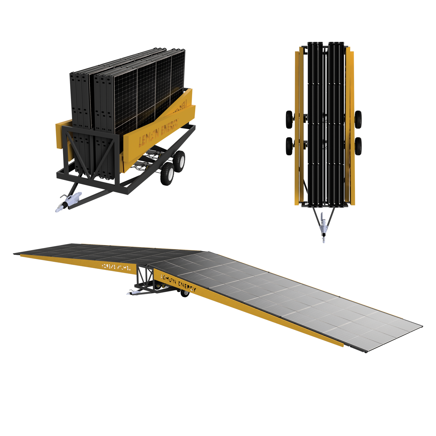 Our bespoke deployable solar solution Delivering 1.3-129kWp of output. With a variety of solar panel arrangement from 1-4 wide in landscape and portrait.