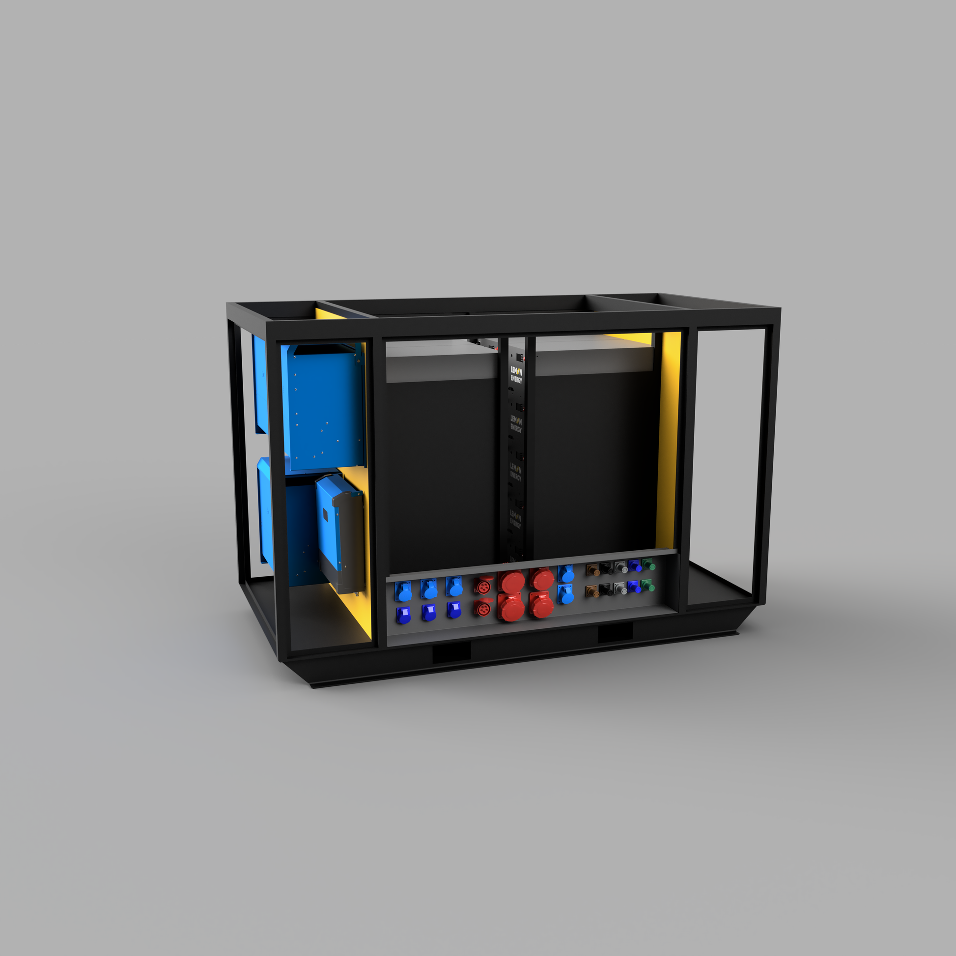 Our units can be configured to you needs. A huge range of inverter power from 0.5-540kVA coupled with our Lemon Energy Battery range covering 4-1620kWh. If you want solar this can be add too, every unit comes with AC-Solar inputs with capacities up to and matching the inverter size chosen. Or DC attached solar can be specified with the MPPTs inbuilt ready to go as soon as it arrives onsite. Just connect the solar panels to it!